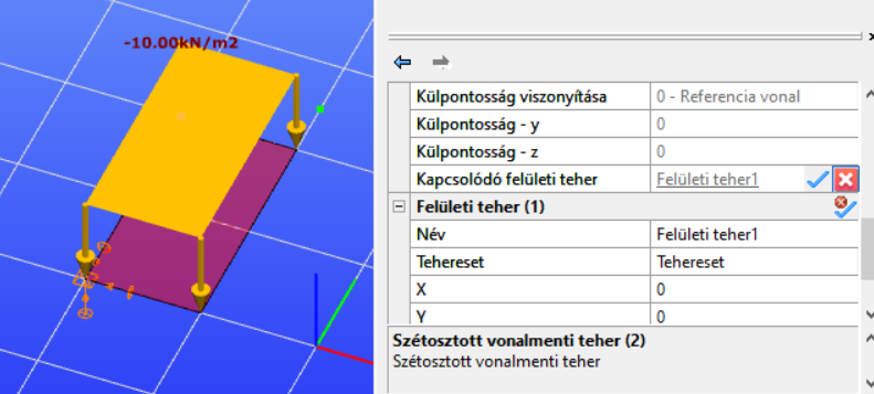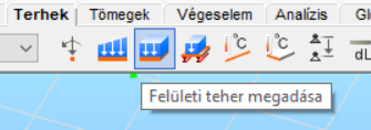 A dialógon meg kell adni a teher intenzitását, majd a kiválasztás funkció () segítségével, a szerkezeti elem(ek)re kattintva a teher rákerül a kiválasztott felület(ek) egészére.